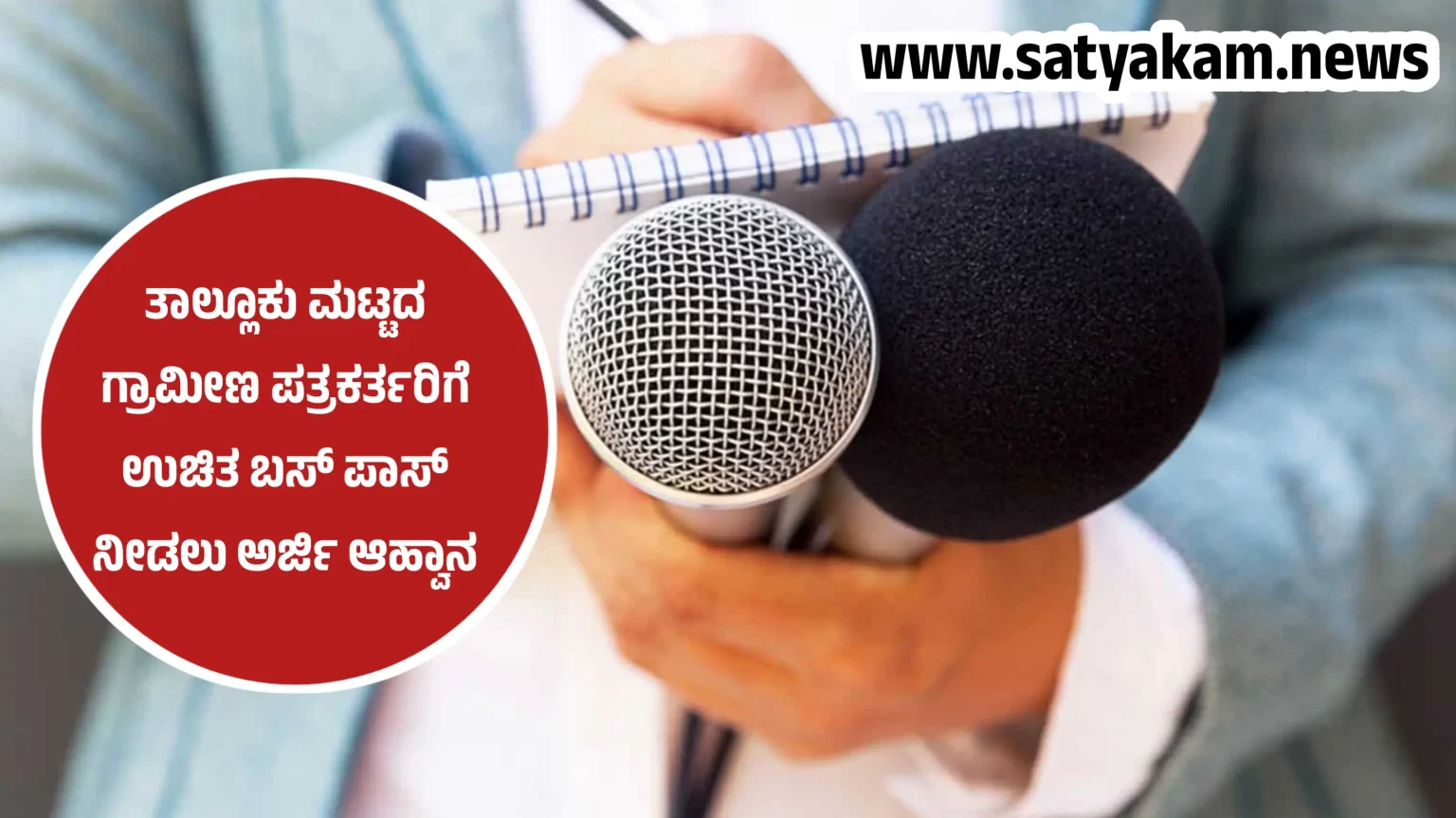 ವಾರ್ತಾ ಮತ್ತು ಸಾರ್ವಜನಿಕ ಸಂಪರ್ಕ ಇಲಾಖೆಯ ಮಾಧ್ಯಮ ಪಟ್ಟಿಯಲ್ಲಿರುವ ಮಾಧ್ಯಮ ಸಂಸ್ಥೆಗಳಲ್ಲಿ ಕಾರ್ಯ ನಿರ್ವಹಿಸುತ್ತಿರುವ ತಾಲ್ಲೂಕು ಮಟ್ಟದ ಪತ್ರಕರ್ತರು ತಮ್ಮ ವೃತ್ತಿ ನಿರತ ಚಟುವಟಿಕೆಗಳ ಸಂಬಂಧ ತಮ್ಮ ಜಿಲ್ಲಾದ್ಯಂತ ಉಚಿತವಾಗಿ ಸಂಚರಿಸಲು ಅನುಕೂಲವಾಗುವಂತೆ ಉಚಿತ ಬಸ್ ಪಾಸ್ ನೀಡಲು ಅರ್ಜಿಗಳನ್ನು ಆಹ್ವಾನಿಸಲಾಗಿದೆ.