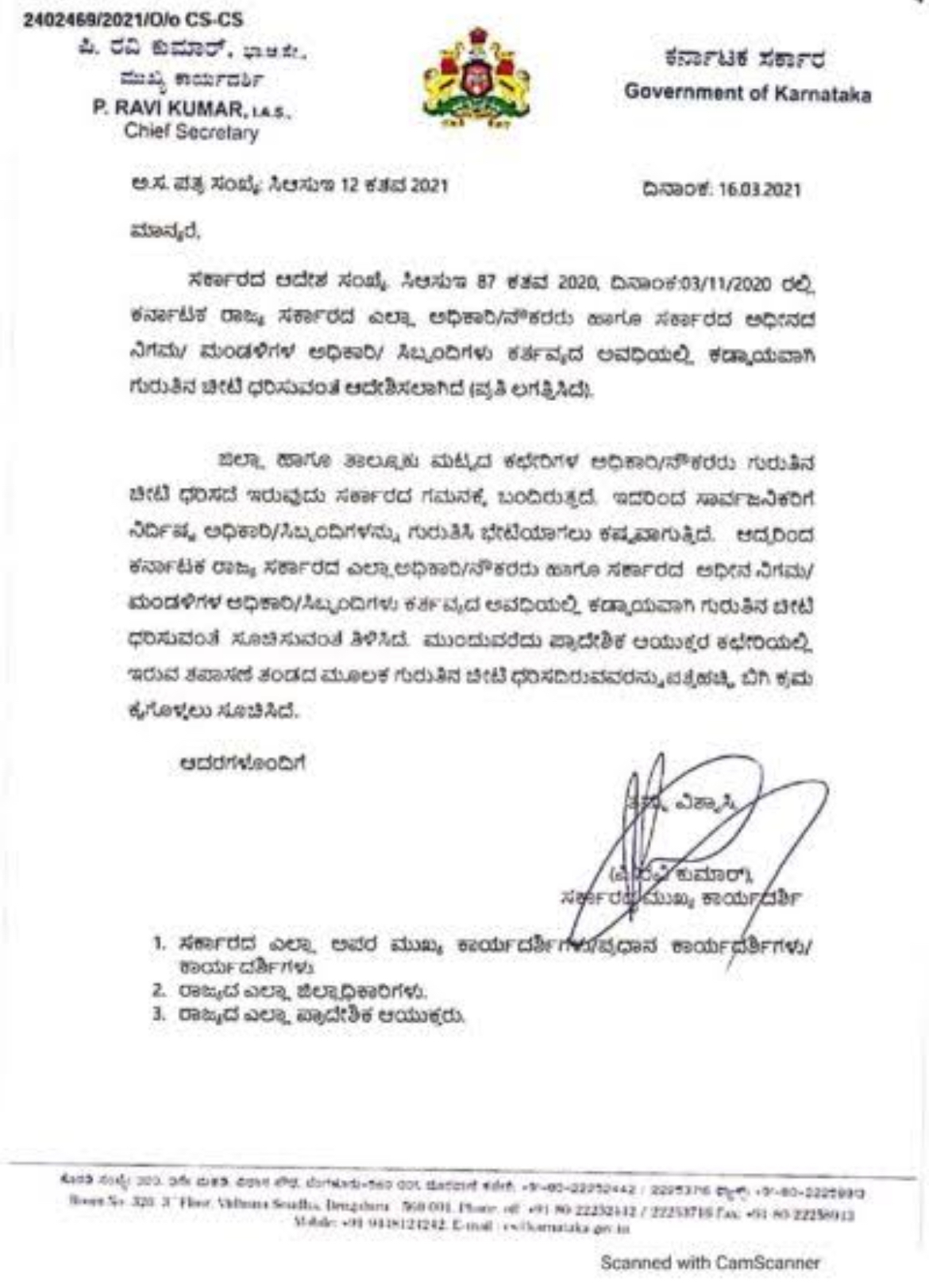 ಗುರುತಿನ ಚೀಟಿ ಧರಿಸಿ ಕರ್ತವ್ಯ ನಿರ್ವಹಿಸಲು ಅಧಿಕಾರಿ/ಸಿಬ್ಬಂದಿಗಳ ದಿವ್ಯ ನಿರ್ಲಕ್ಷ್ಯ ವರದಿ:ಕುದಾನ್ ಸಾಬ್ ಯಾದಗಿರಿ: ಜಿಲ್ಲೆಯ ವಡಗೇರ ತಾಲ್ಲೂಕು ಕಚೇರಿಯಲ್ಲಿ ಕರ್ತವ್ಯ ನಿರ್ವಹಿಸುವ ಯಾವೊಬ್ಬ ಸಿಬ್ಬಂದಿಯೂ ಕಚೇರಿಯ…