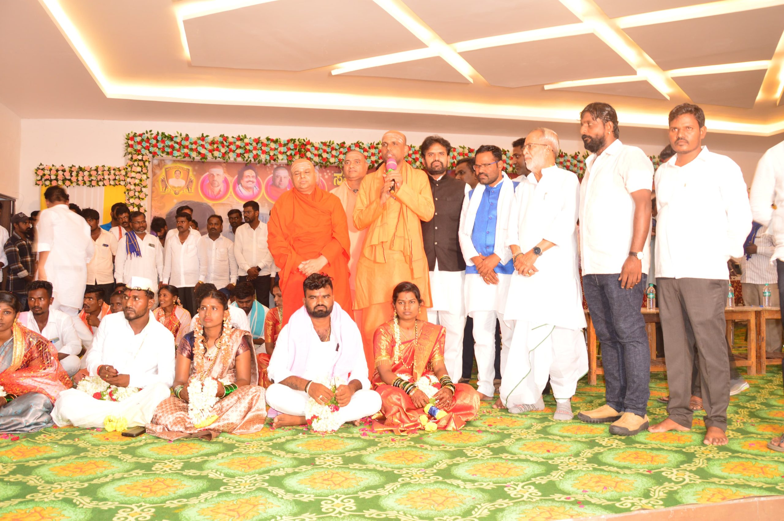 ವೇದಿಕೆಯ ಮೇಲೆ ದಿವ್ಯ ಸಾನಿಧ್ಯ ವಹಿಸಿದ್ದ ಪರಮ ಪೂಜ್ಯ ಶ್ರೀ  ಶಾಂತ ವೀರ ಗುರು ಮುರುಘರಾಜೇಂದ್ರ ಮಹಾಸ್ವಾಮಿಗಳು  ಖಾಸ ಮಠ ಗುರುಮಠಕಲ್ ಸಾಮೂಹಿಕ ವಿವಾಹ ಎಂದರೆ ಅದು ಸಾಮರಸ್ಯ ಸಾರುವ ವಿವಾಹವಾಗಿವೆ, ಇಂತಹ ವಿವಾಹ ಏರ್ಪಾಟುಗಳು ವಿರಳಾತಿ ವಿರಳವಾಗಿವೆ ವಿವಾಹ ಏರ್ಪಾಟುಗಳು ಉಚಿತವಾಗಿ ಏರ್ಪಡಿಸುವುದು ತುಂಬಾ ಶ್ಲಾಘನೀಯ ಕಾರ್ಯ ಎಂದು ನುಡಿದರು.