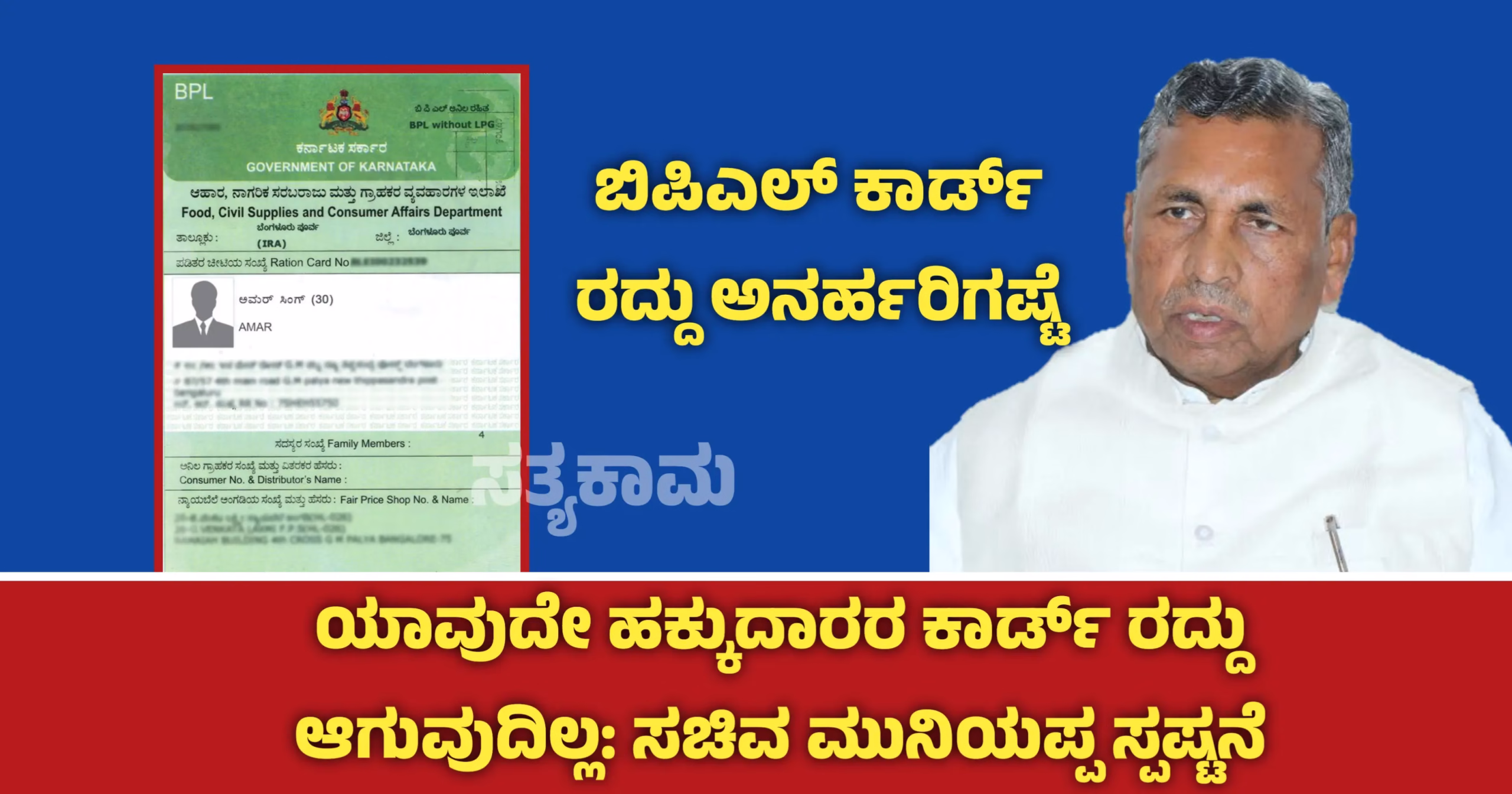 ರಾಜ್ಯದಲ್ಲಿ ಬಿಪಿಎಲ್ (Below Poverty Line) ಕಾರ್ಡ್ಗಳ ರದ್ದತಿ ಕುರಿತು ಕಳೆದ ಕೆಲವು ದಿನಗಳಿಂದ ಹಲವಾರು ಊಹಾಪೋಹಗಳು ನಡೆಯುತ್ತಿದ್ದರೂ, ಆಹಾರ ಮತ್ತು ನಾಗರಿಕ ಪೂರೈಕೆ ಇಲಾಖೆಯ ಸಚಿವ ಕೆ.ಹೆಚ್. ಮುನಿಯಪ್ಪ ಅವರು ಈ ಕುರಿತು ಸ್ಪಷ್ಟನೆ ನೀಡಿದ್ದು, ಜನರಲ್ಲಿ ಶಾಂತಿ ಮೂಡಿಸಿದೆ.