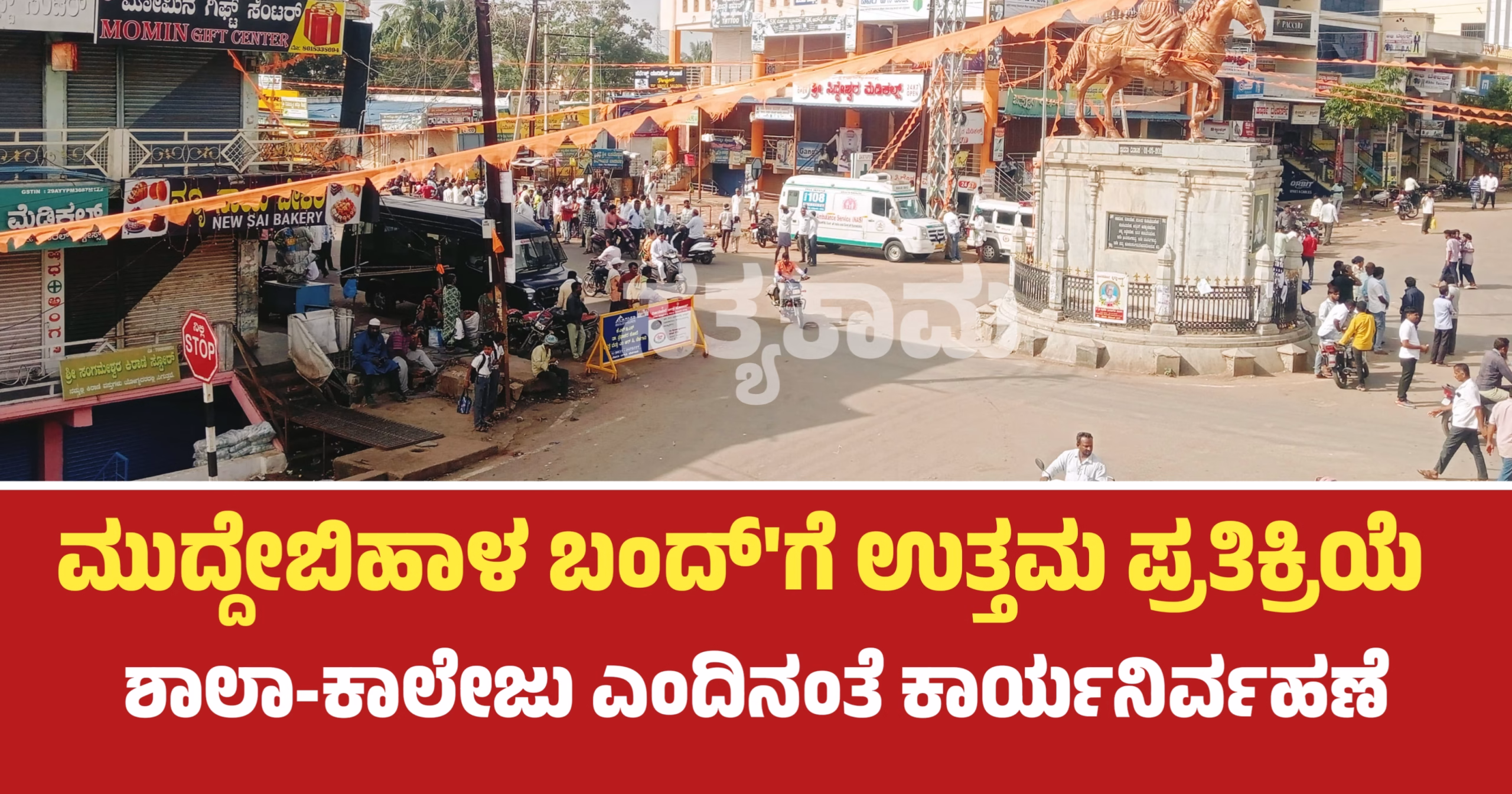 ಹೌದು.. ಮುದ್ದೇಬಿಹಾಳ ಪಟ್ಟಣದಲ್ಲಿ ಎಲ್ಲಾ ಅಂಗಡಿ ಮುಂಗಟ್ಟುಗಳು ನೂರಕ್ಕೆ ನೂರರಷ್ಟು ಬಂದ್ ಮಾಡಲಾಗಿದೆ. ಬಸವೇಶ್ವರ ವೃತ್ತದಲ್ಲಿ ಕೂಲಿ ಕಾರ್ಮಿಕರು ತಮ್ಮ ದೈನಿಂದಿನ ಕೆಲಸಕ್ಕಾಗಿ ಬಂದಿದ್ದರಿಂದ ಸ್ವಲ್ಪ ಪ್ರಮಾಣದಲ್ಲಿ ಜನದಟ್ಟಣೆ ಕಂಡು ಬಂದರೆ, ಶಾಲೆ-ಕಾಲೇಜು ಎಂದಿನಂತೆ ಆರಂಭ ಗೊಂಡಿದ್ದರಿಂದ ವಿದ್ಯಾರ್ಥಿಗಳು ಪರದಾಡಬೇಕಾದ ಸನ್ನಿವೇಶಗಳು ಎದುರಾದವು.
