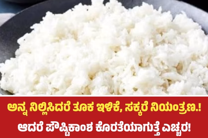 ಅನ್ನ ನಿಲ್ಲಿಸಿದರೆ ತೂಕ ಇಳಿಕೆ, ಸಕ್ಕರೆ ನಿಯಂತ್ರಣ.! ಆದರೆ ಪೌಷ್ಟಿಕಾಂಶ ಕೊರತೆಯಾಗುತ್ತೆ ಎಚ್ಚರ!